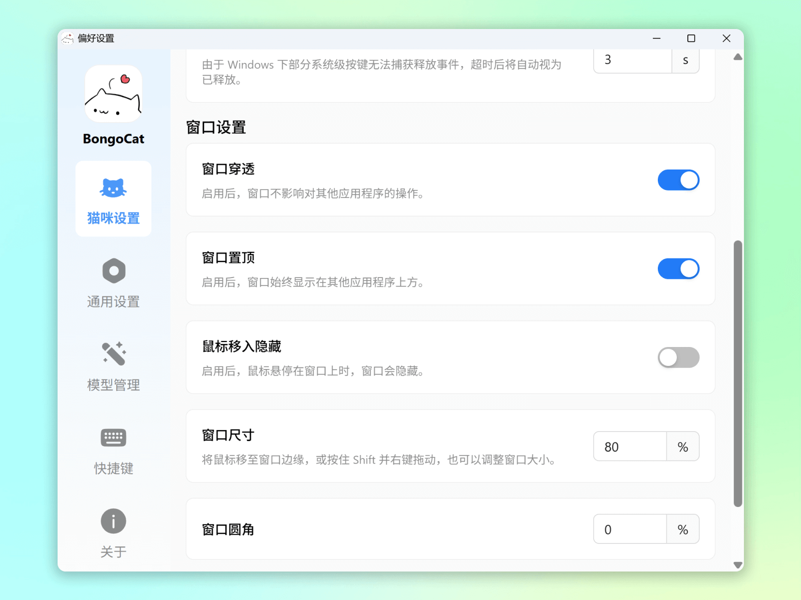 BongoCat 是一款人气很高的桌面小工具,会在屏幕上显示一只可爱的小猫,并根据你的键盘和鼠标操作实时敲击“邦戈鼓”。