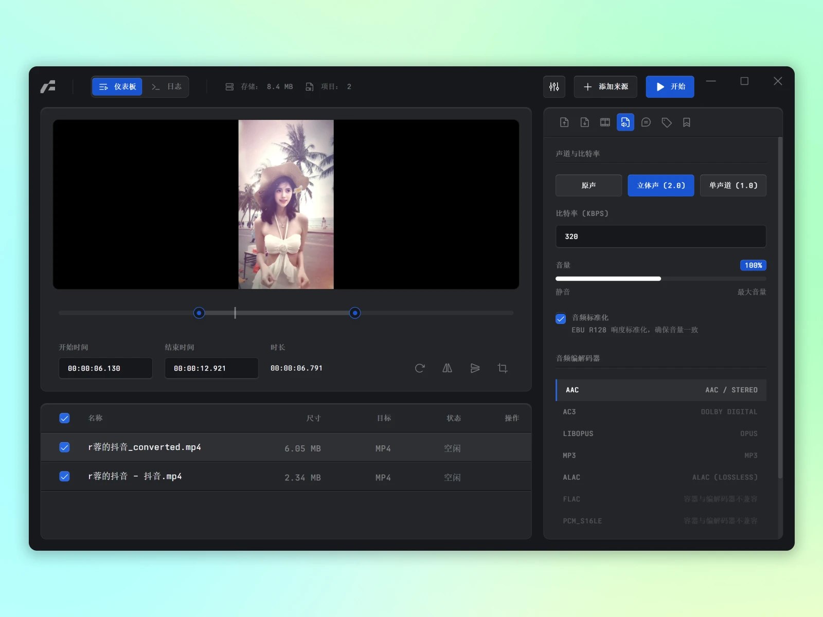 支持常见音视频格式互转,快速解决设备或平台不兼容问题,无需额外转码工具,视频剪辑的好帮手。