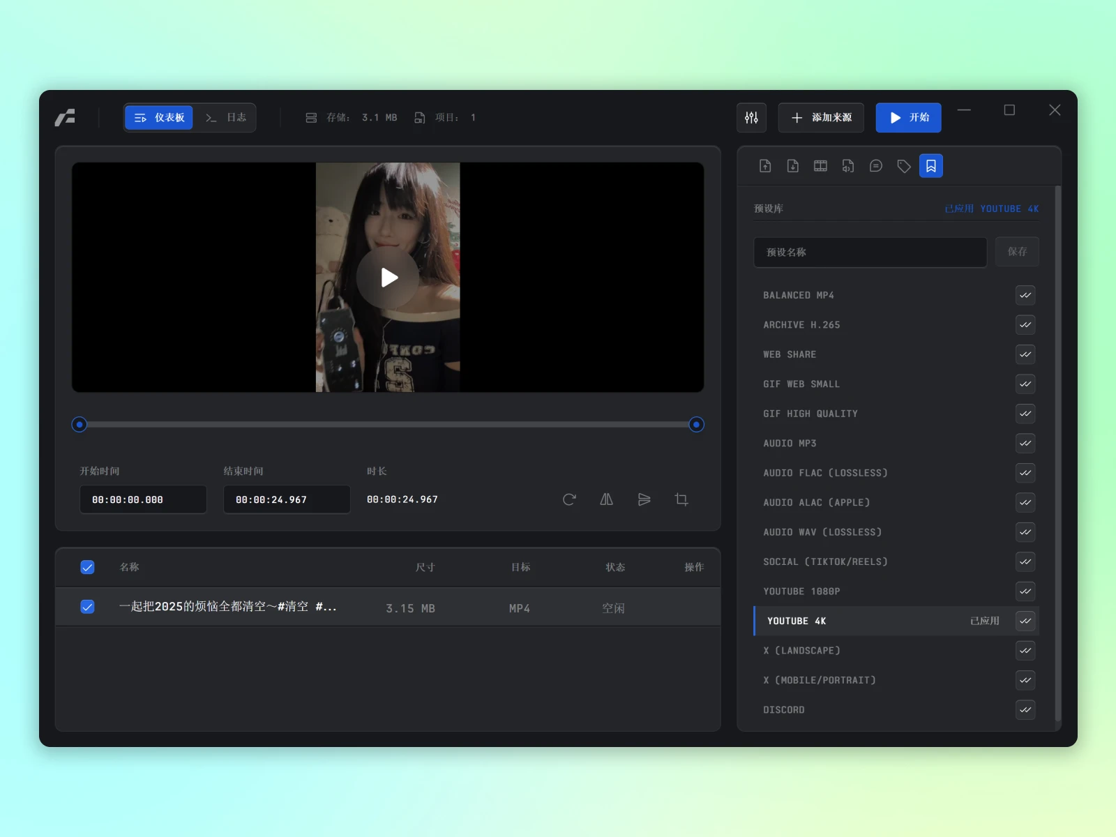 内置多种压缩预设,一键降低体积同时尽量保留清晰度,适合B站抖音微信投稿、分享或存储优化。