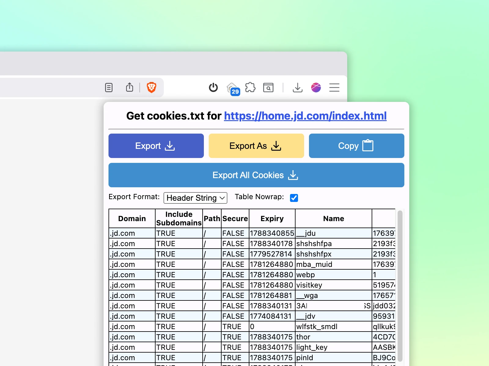无需 F12 手动寻找,安装扩展后点击按钮即可快速复制 / 导出完整 Cookie。