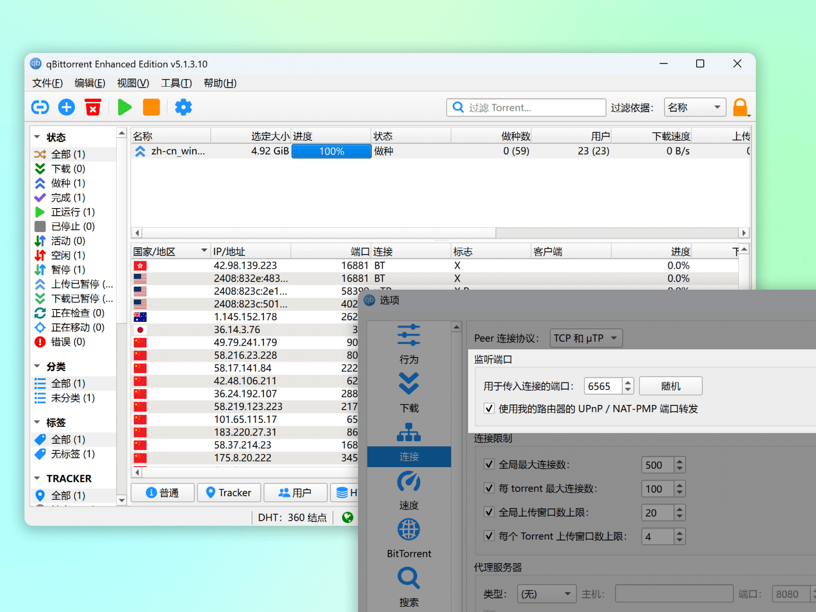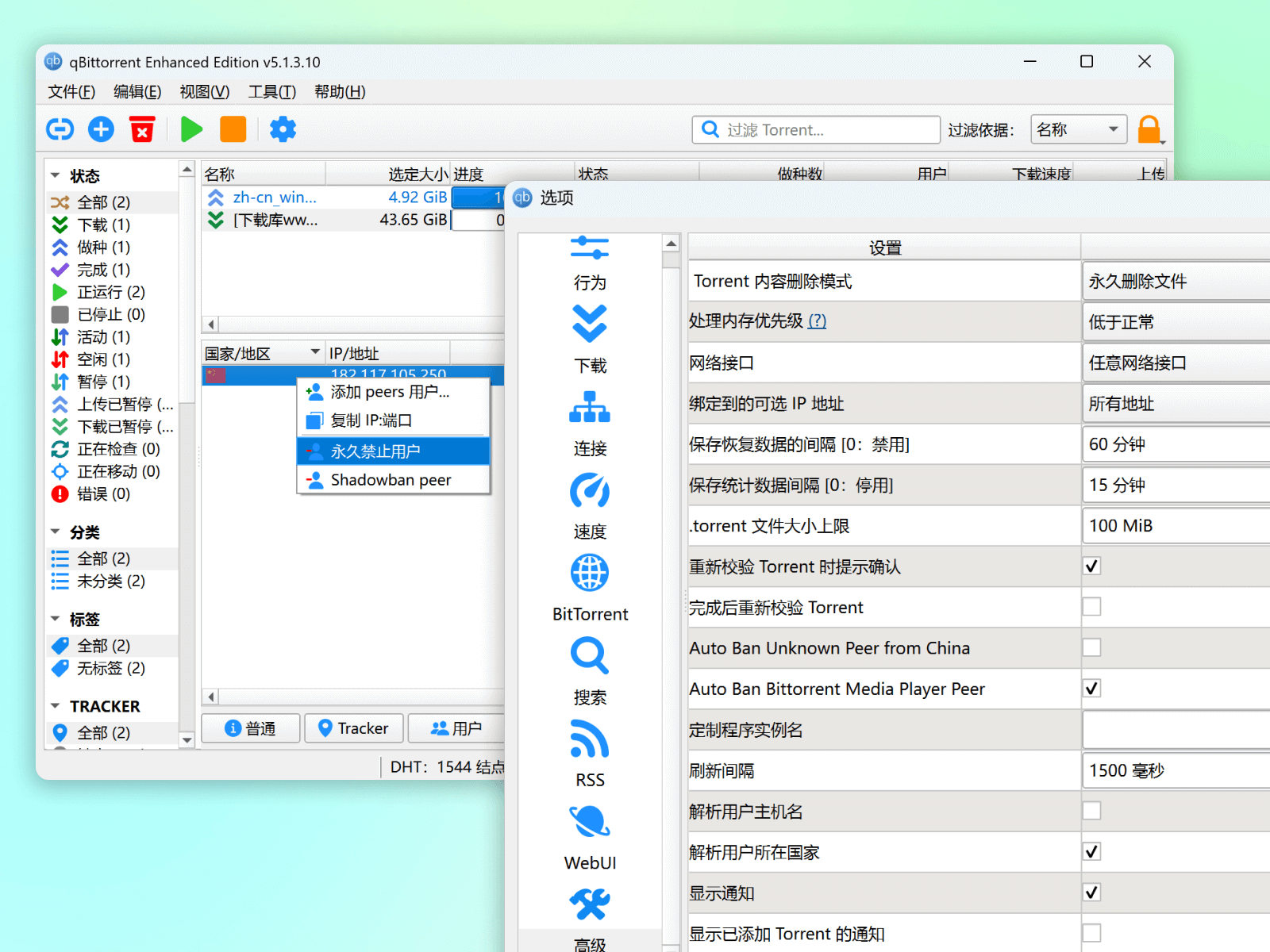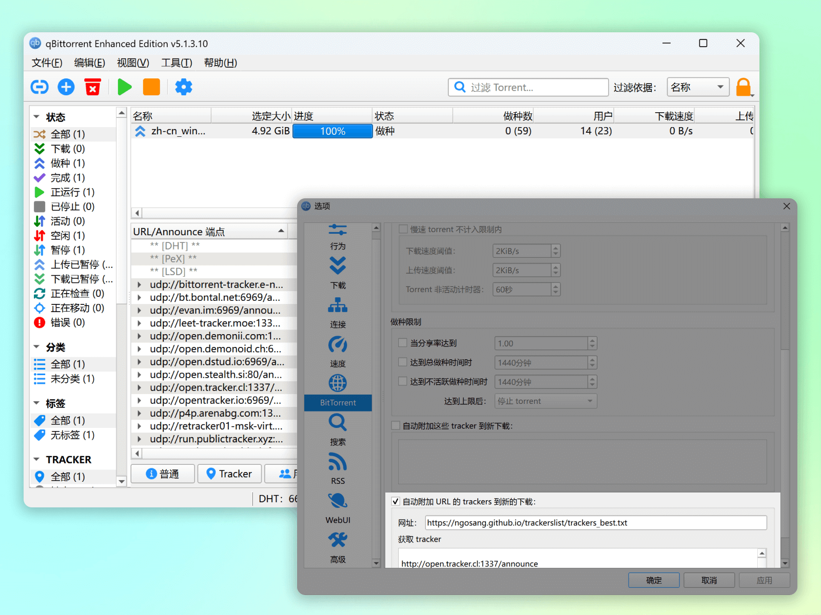 免费的 BT 下载工具,自动禁止迅雷、QQ、百度等离线下载吸血,自动更新订阅公共 Tracker 服务器地址列表。